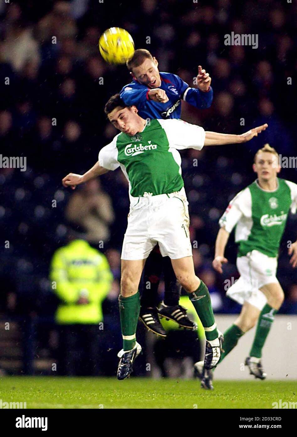 Editorial Use Only Craig Moore Heads The Ball Over Scott Brown During The Rangers Vs Hibernian Cis Cup Semi Final At Hampden Park Stock Photo Alamy