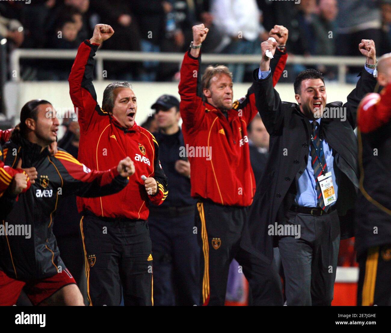 Galatasaray Mitarbeitern Und Spielern Feiern Ihre 2 1 Sieg Gegen Stadt Rivalen Besiktas In Der Letzten Minute Von Ihrer Turkischen Super League Soccer Im Inonu Stadion In Istanbul 7 Mai 2006 Entsprechen Ein Spates Tor